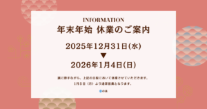 ・休業期間 2024年12月28日(土)~2025年1月5日(日)